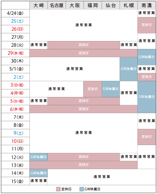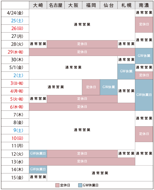 ご迷惑をお掛けいたしますが、休業日をご確認の上