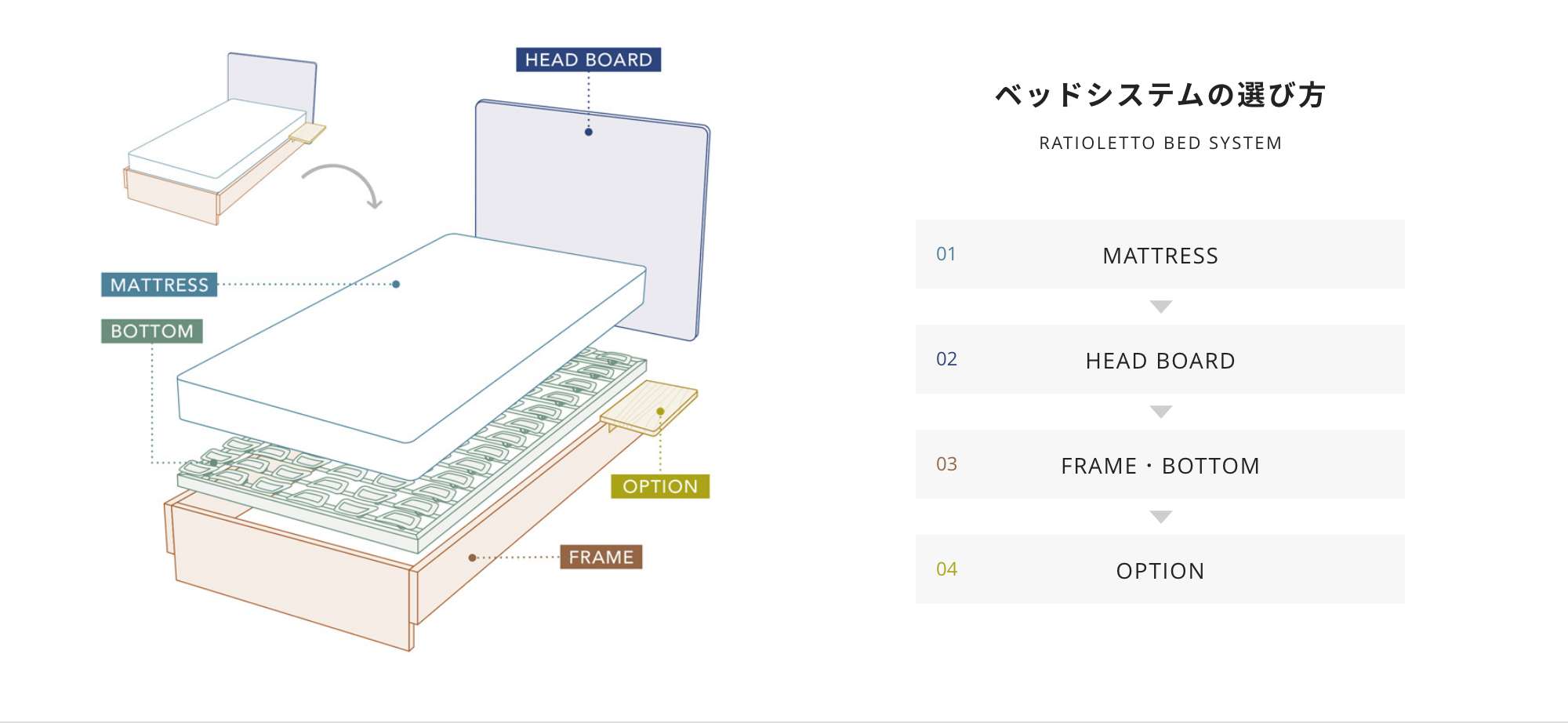セミオーダーのベッドシステムで、体も心も癒されるお気に入りの1台を。