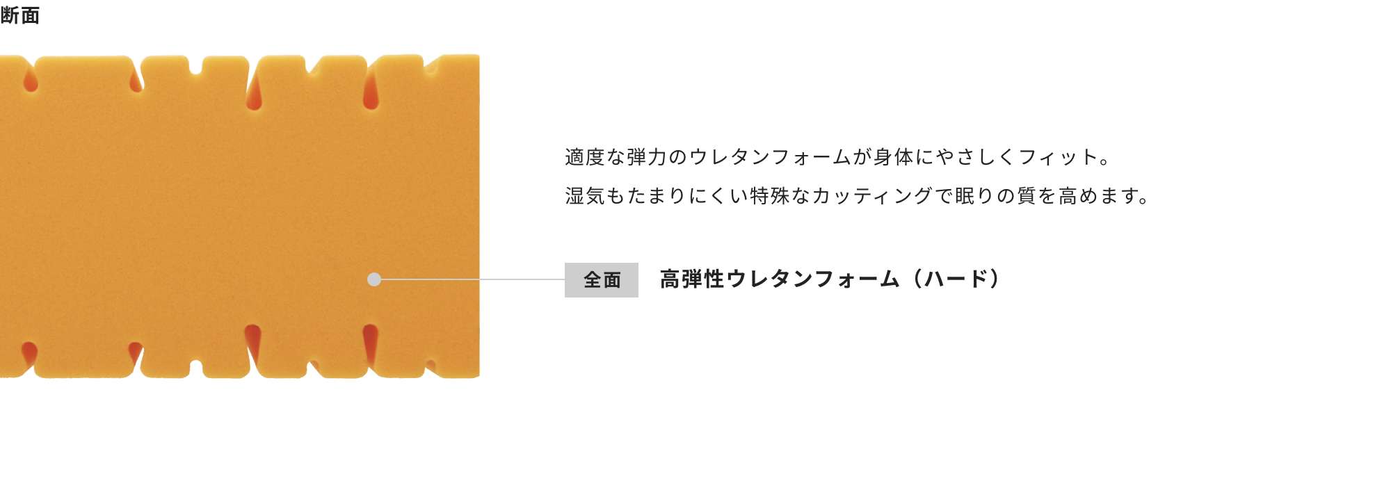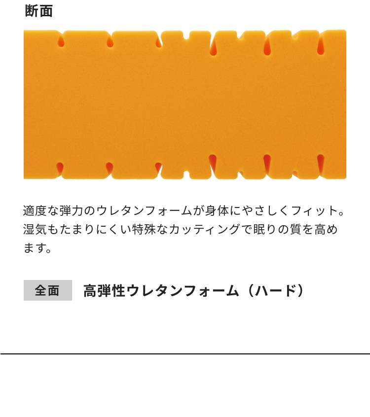 高弾性のウレタンが体を支え、7×5のゾーニングが寝返りをサポート。コシが強いマットレスは、敷布団からの切り替えにもおすすめです。