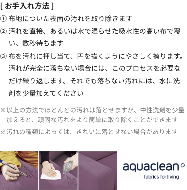 アクアクリーン®テクノロジーは、ほとんどの汚れを水で拭き取るだけで落とすことができます。