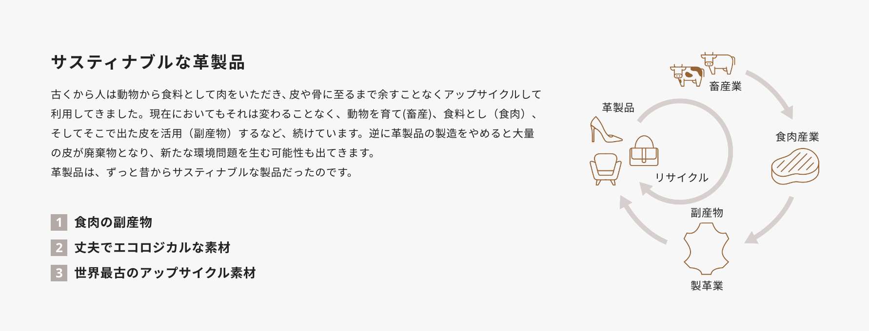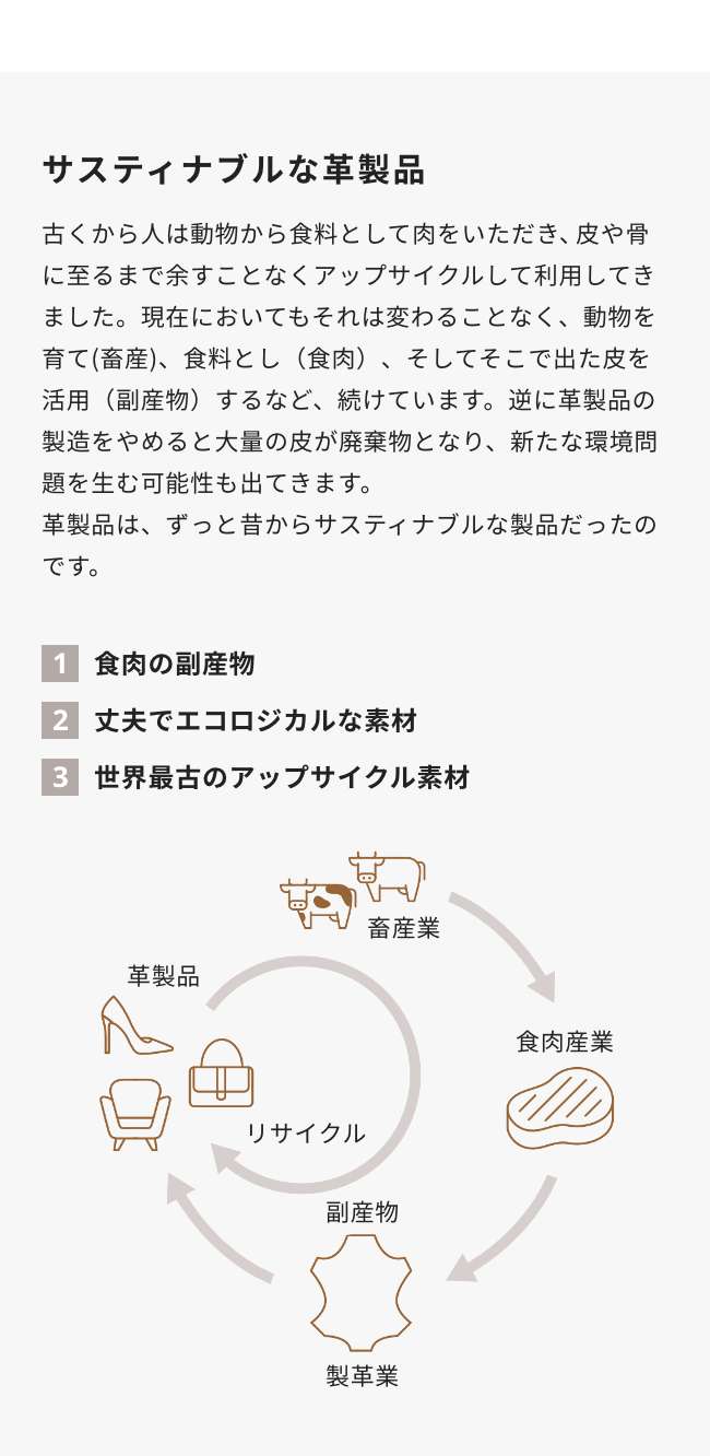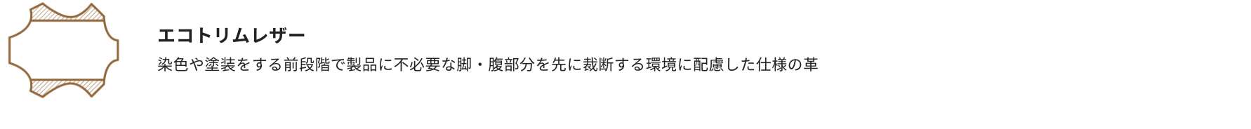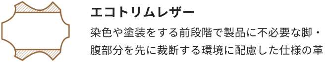 また、「エコトリムレザー」を採用しているので、製造の際に使用するエネルギーを15%削減しています。天然の風合いを活かし、革本来の柔らかな手触りや風合いを感じていただけます。