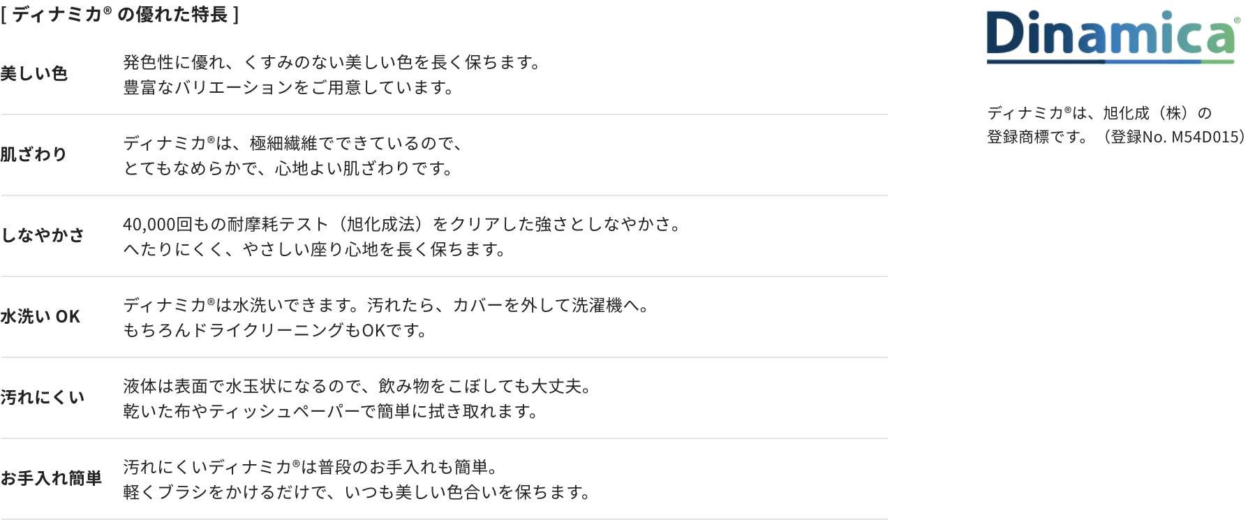 ディナミカ®のカラーバリエーションはこちらよりご覧ください。