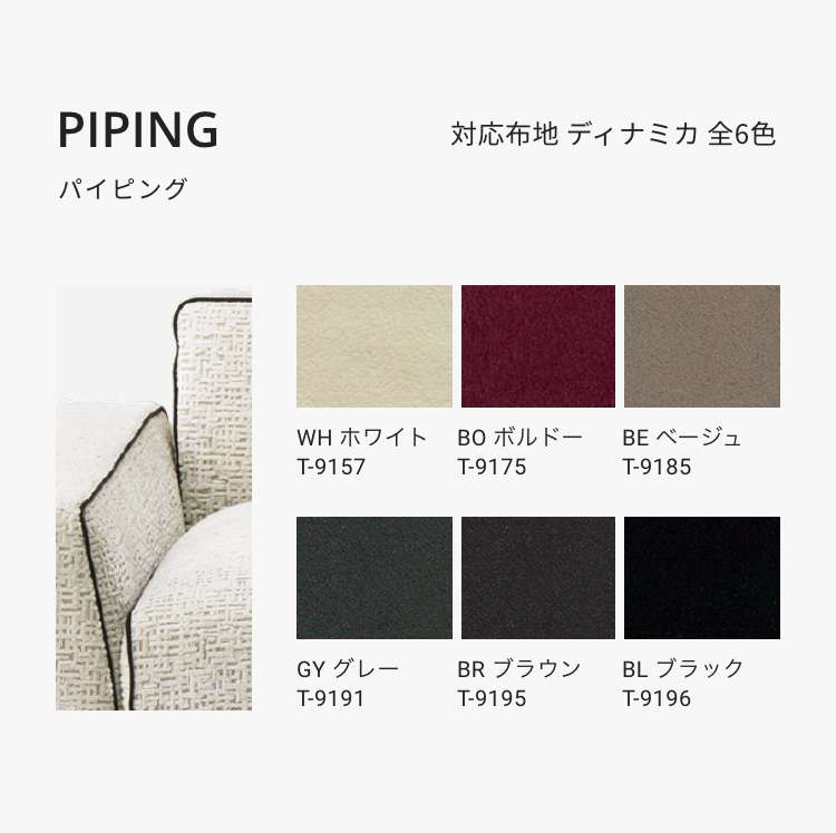 - 座クッションは、プロファイル加工されたウレタンフォームとフェザーパッドを使用した柔らかなソフトタイプ(S)と