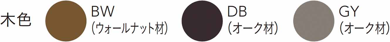 (ウッド): ウォールナット材突板 ポリウレタン塗装/ウォールナット(BW) オーク材突板 ポリウレタン塗装/ダークブラウン(DB)・グレー(GY) -