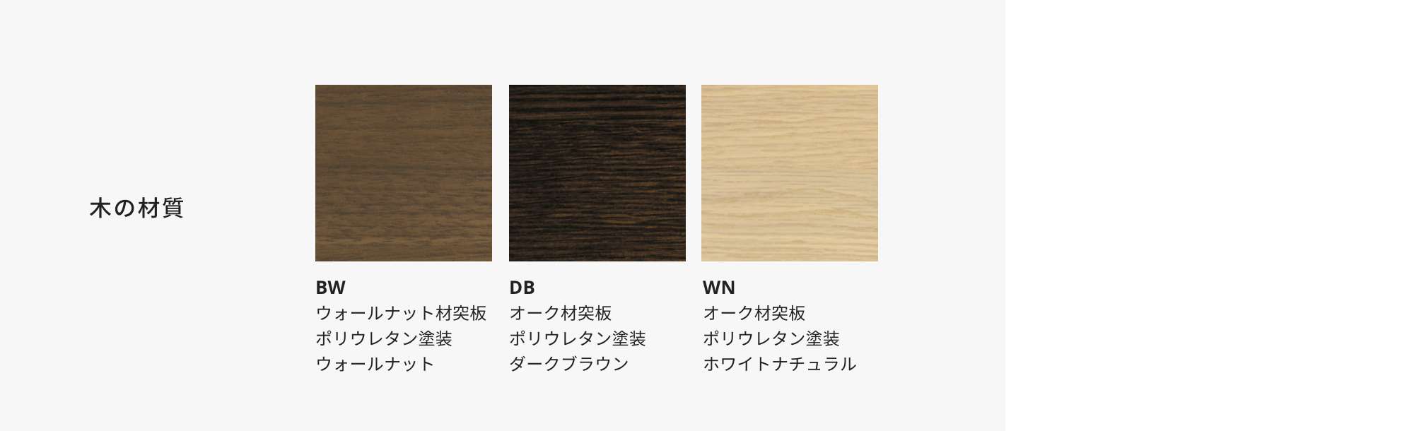 | オーク材突板 ポリウレタン塗装/ダークブラウン(DB)・ホワイトナチュラル(WN) |