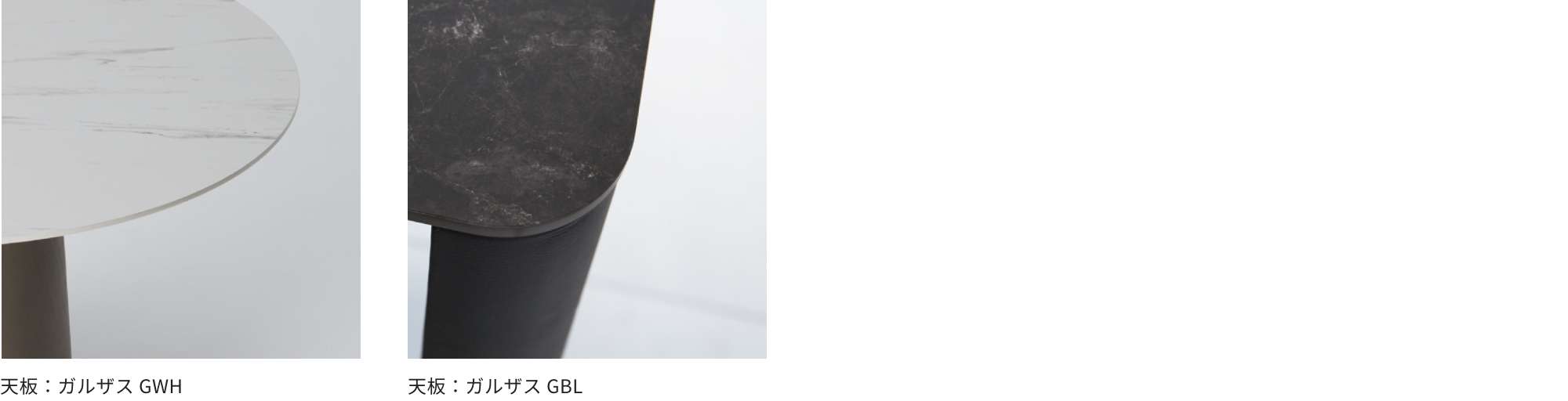 天板: (ウッド) ウォールナット材突板 ポリウレタン塗装/ウォールナット(BW) オーク材突板ポリウレタン塗装/ダークブラウン(DB)・グレー(GY)・ナチュラル(NA) (ガルザス) セラミックタイル 12t シャイニーポリッシュ仕上げ/ブラック(GBL)・ホワイト(GWH) セラミックタイル 12t シルク仕上げ/グレー(GGY) - フレーム:スチール 粉体塗装梨地仕上げ/ブラック色